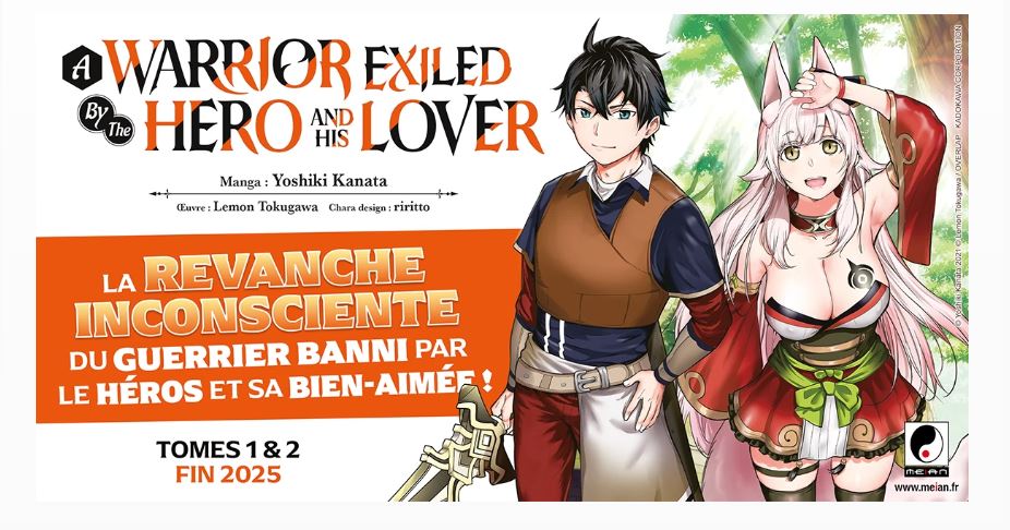 Après quelques mois calmes, les éditions Meian reprennent leurs annonces avec l’acquisition du manga A Warrior Exiled by the Hero and His Lover. Cette œuvre, adaptée par Yoshiki Kanata, est tirée d’un light novel inédit en France écrit par Lemon Tokugawa et illustré par riritto.