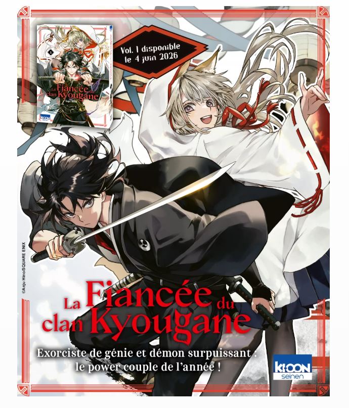 Les éditions Ki-oon enrichissent leur collection seinen avec l’arrivée prochaine de La Fiancée du clan Kyougane, un manga mêlant fantasy historique, arts martiaux et romance surnaturelle. La série sera disponible en France à partir du 4 juin, au prix de 7,95 € par volume.