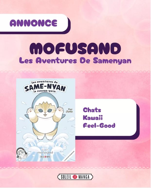 Les fans de chats kawaii vont ĂȘtre ravis ! Les Ă©ditions Soleil Manga poursuivent lâexploitation de la licence Mofusand avec lâarrivĂ©e prochaine du manga Mofusand â Les Aventures de Samenyan, un titre aussi tendre quâamusant attendu en librairie le 4 juin 2026 au prix de 9,99âŹ.