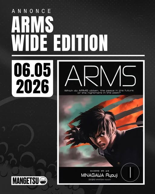 Arms Wide, le manga culte de Ryouji Minagawa, auteur de Spriggan, revient en France grâce aux éditions Mangetsu. Cette nouvelle édition reprend la “Wide Edition” japonaise, avec un format agrandi et 12 tomes doubles compilant les 24 tomes originaux.