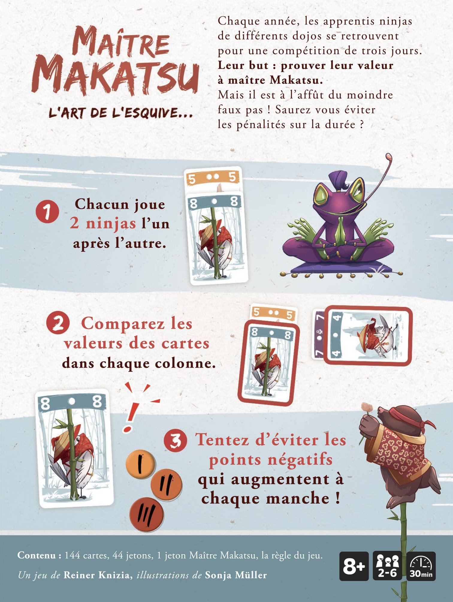 Les amateurs de jeux de cartes tactiques et de bluff vont adorer Maître Makatsu, le nouveau jeu édité par Gigamic, disponible dès le 13 février 2026. Plongé dans un univers de ninjas et de dojos, chaque joueur devra faire preuve de discernement, d’anticipation et de subtilité pour éviter les points de pénalité et l’œil attentif du légendaire Maître Makatsu.