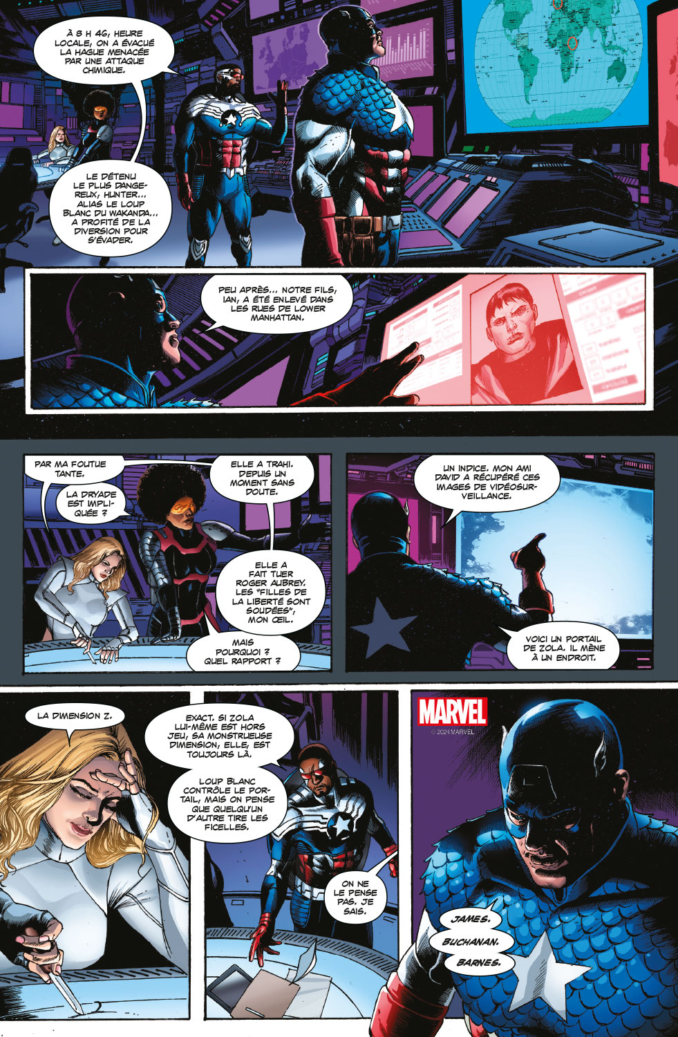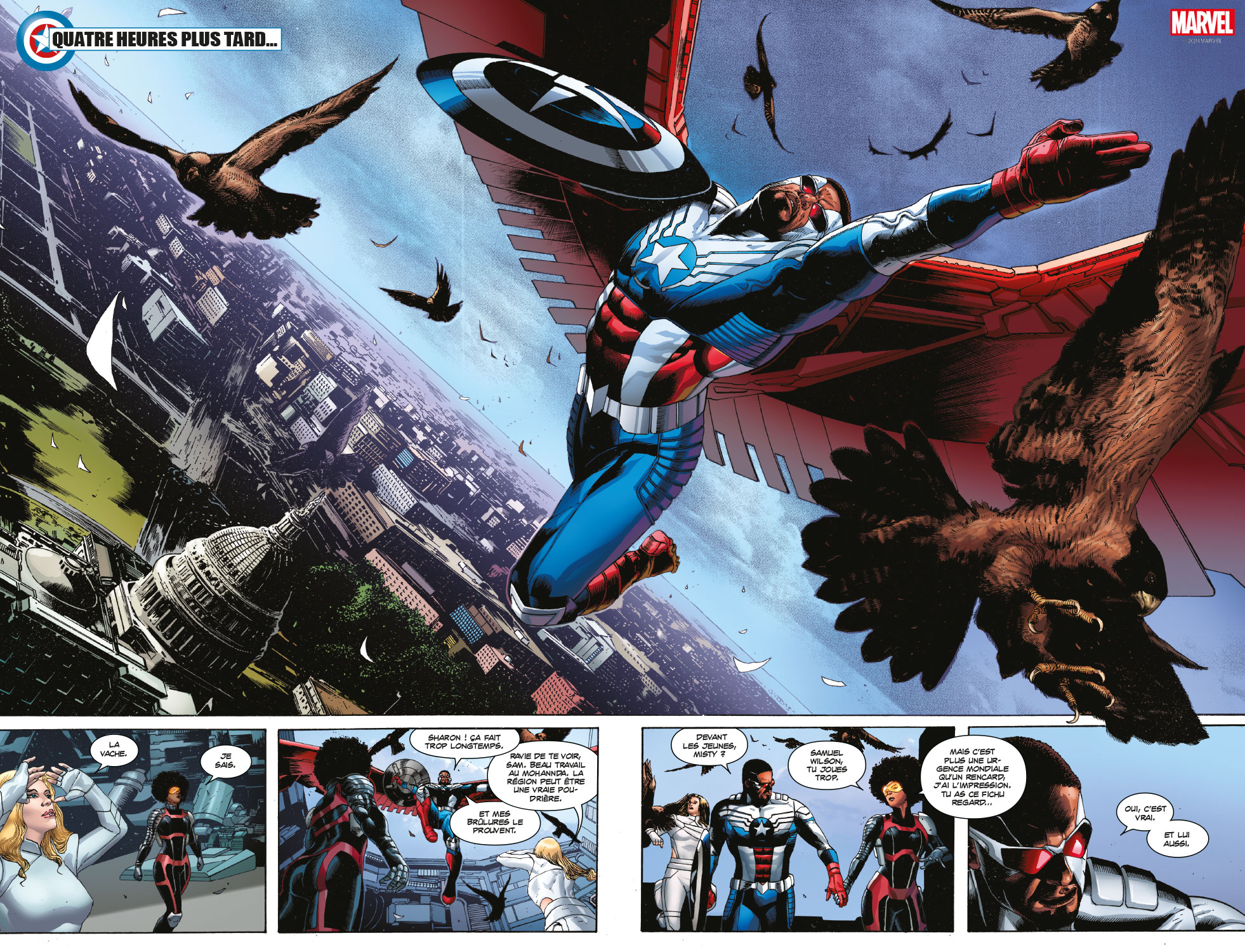 Toutes les pièces sont en place sur l’échiquier… Deux Captain America ne sont pas de trop pour faire face aux machinations, aux trahisons et aux dangers qui se trament en secret. Misty Knight, Sharon Carter et Black Widow entrent également dans la danse, mais à qui faire confiance ?