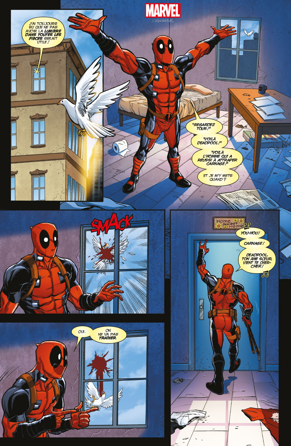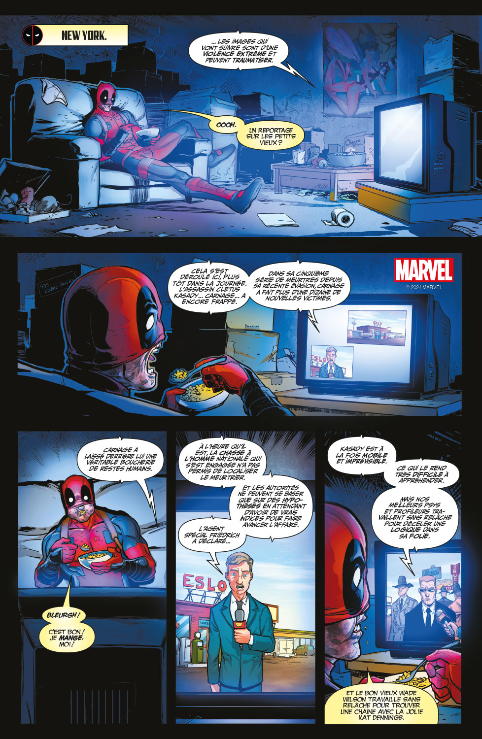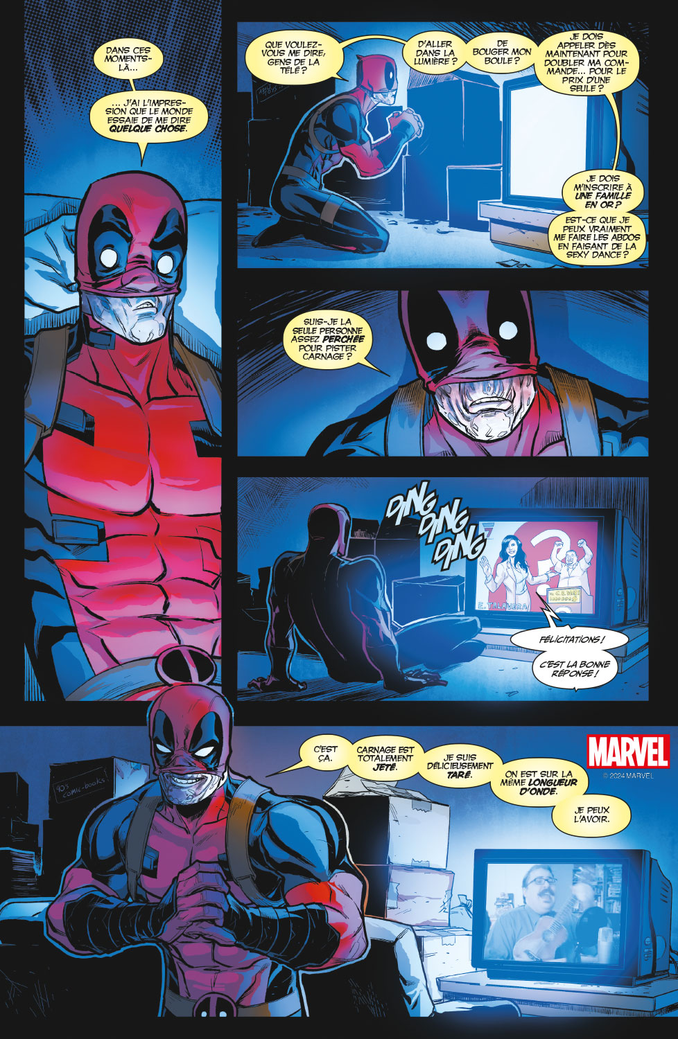 Deux cinglés en costume rouge pour le prix d’un ! À votre gauche, Deadpool, le cinglé gentil. À votre droite, Carnage, le cinglé très très méchant. L’issue du combat est incertaine, mais une chose est sûre : ça va saigner !