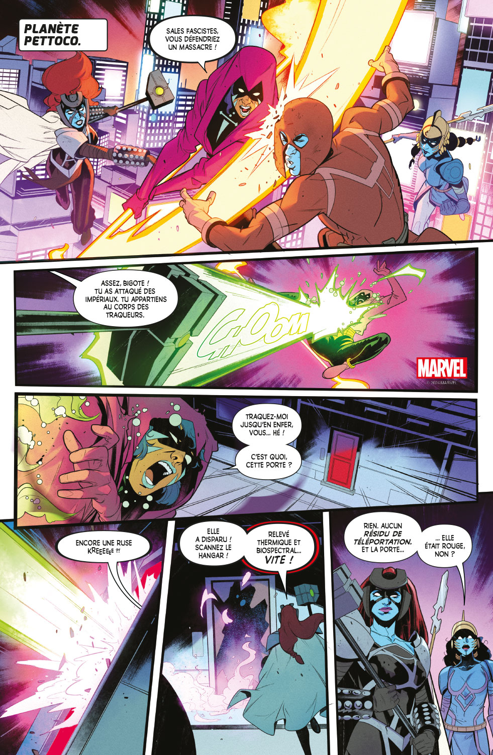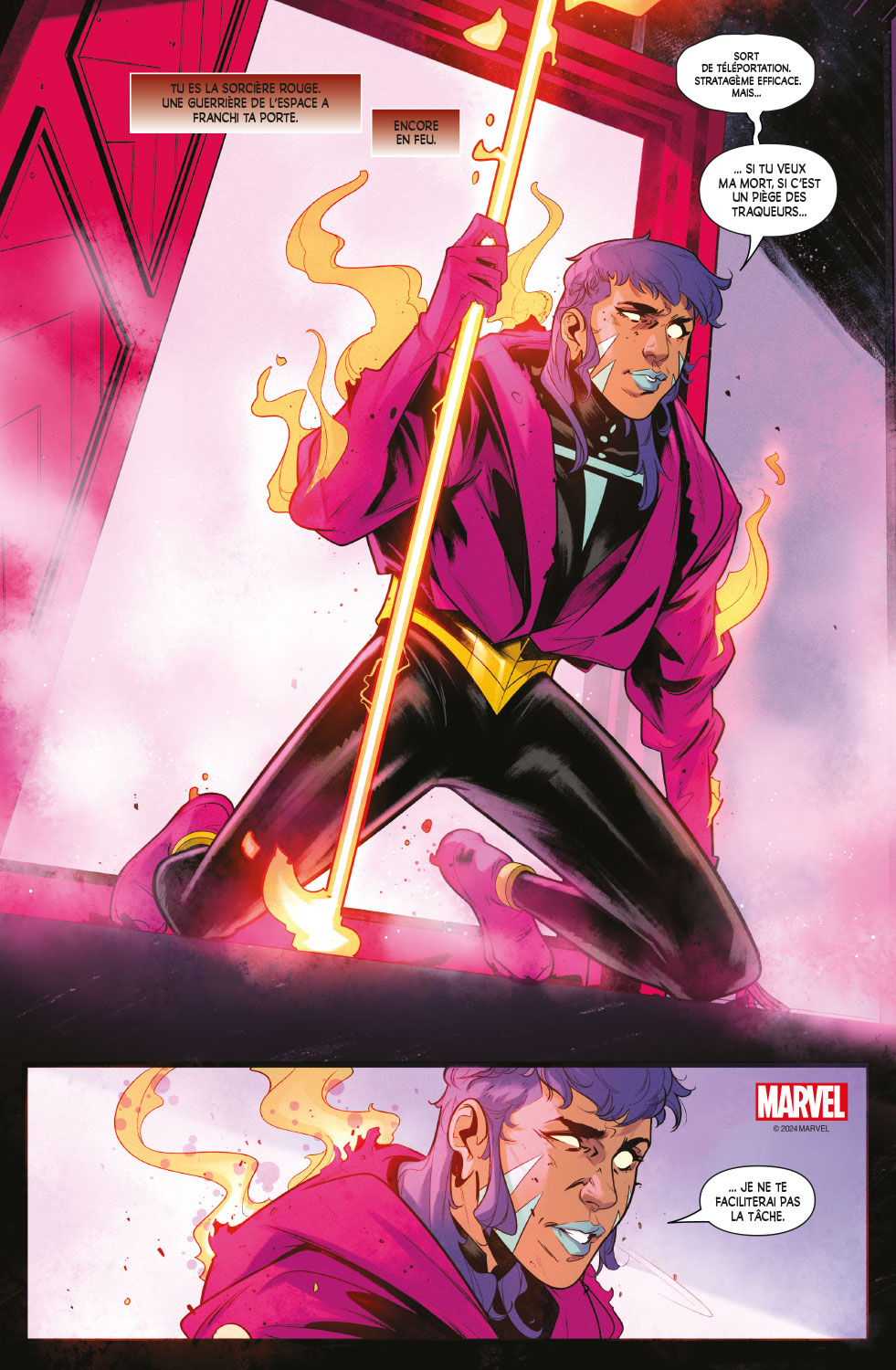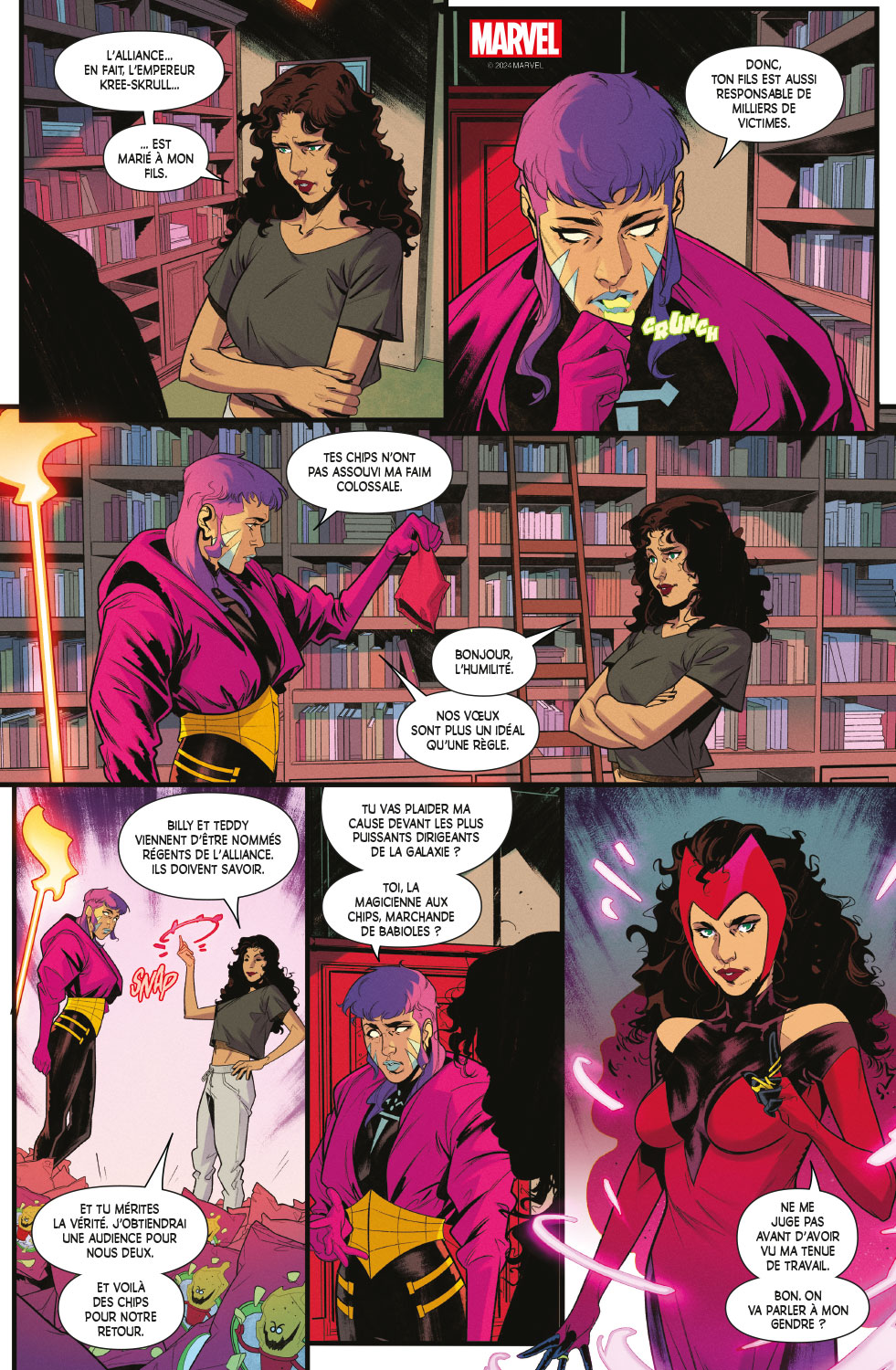 Les âmes en peine continuent d’affluer à l’officine mystique de la Sorcière Rouge. Parmi elles, Ganymède, seule survivante d’un ordre de guerrières décimées par les Skrulls. Pour épauler la jeune femme dans sa quête de justice, Wanda plaide sa cause devant Hulkling et Wiccan.