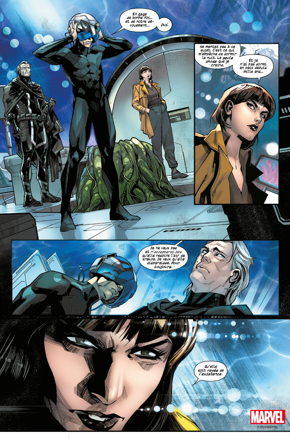 Or, c’est à cette condition que celle qui fut jadis l’ennemie féroce des X-Men a accepté de servir les intérêts du nouvel État-nation mutant. Mais Moira refuse à tout prix que Destinée soit sauvée…